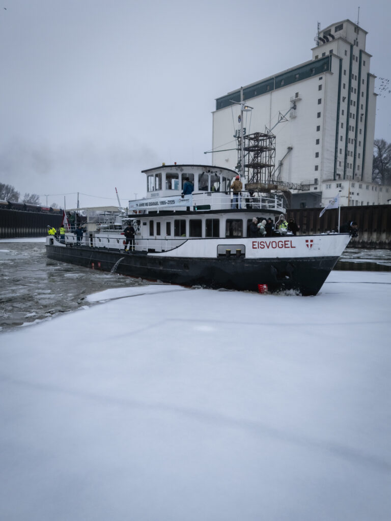 Gerade bei seltenen, aber besonders intensiven Kälteperioden zeigt sich die Bedeutung einer technischen Ausstattung, die auch für außergewöhnliche Szenarien ausgelegt ist. So wie Anfang 2026, als eine anhaltende Kältewelle erstmals seit dem Jahr 2017 die Wiener Gewässer wieder großflächig zufrieren ließ. „Ab minus sechs Grad frieren die Hafenbecken innerhalb eines Tages zu, ab minus 15 Grad würden sie sich innerhalb weniger Stunden in riesige Eisflächen verwandeln“, erklärt Doris Pulker-Rohrhofer, technische Geschäftsführerin des Hafen Wien. Um den Betrieb aufrechtzuerhalten und Schiffe vor gefährlichem Eisdruck zu schützen, war die „MS Eisvogel“ als Eisbrecher regelmäßig im Einsatz. „Zieht eine massive Kaltfront über Wien, ist die Eisvogel der Garant dafür, dass Frachtschiffe jederzeit ungehinderte Zufahrt zum Kai haben“, so Fritz Lehr, kaufmännischer Geschäftsführer des Hafen Wien. Der Eisbrecher ist ein zentraler Bestandteil der Sicherheits- und Betriebsinfrastruktur und unterstützt damit einen reibungslosen Ablauf im Hafen.